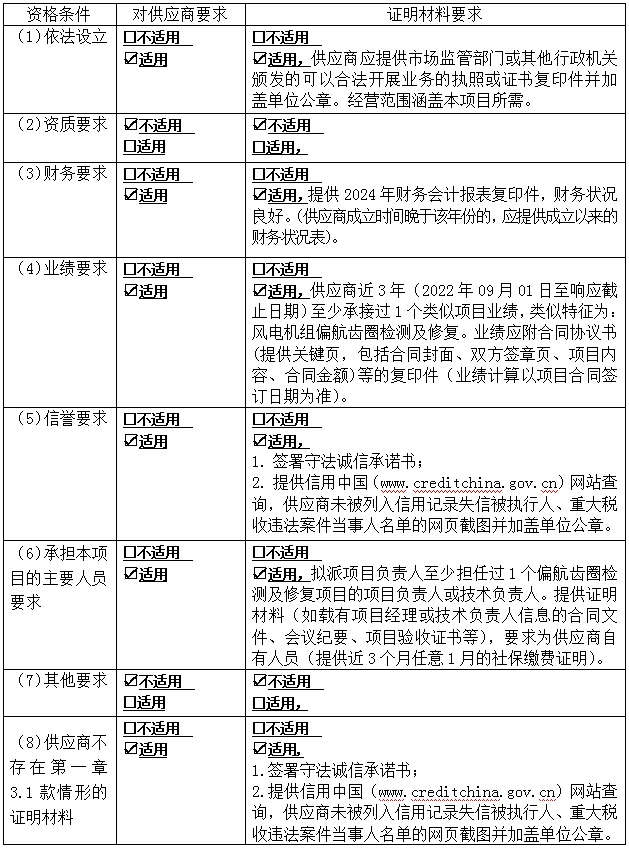 天塘山风电场11号风机偏航齿圈安全隐患处理项目已具备采购条件,现公开邀请供应商参加采购活动。