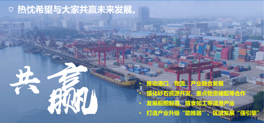 港航水利集团将充分发挥省级港航统一平台资源作用,与各界共建、共享、共赢“港口生态圈”,赋能产业“大发展”。热情欢迎大家来湘参与港口投资建设、热切期待大家选择“城陵矶港”品牌、热忱希望与大家共赢未来发展。诚邀广大制造企业、贸易商、物流伙伴加入港航水利集团“朋友圈”,打造产业升级“助推器”、区域发展“强引擎”。