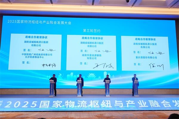 会上,城陵矶港口集团与中国物流集团、岳阳市人民政府、中远海运集运、城陵矶口岸实业签定合作协议,并与广铁集团长沙货运中心、涟源钢铁集团、重庆港等企业签约合作。