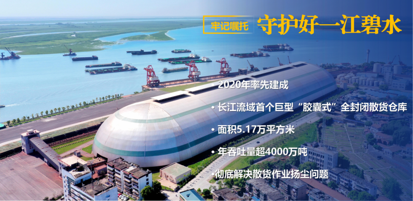 港航水利集团牢记“守护好一江碧水”嘱托,2020年率先建成了长江流域首个巨型“胶囊式”全封闭散货仓库。拥有160万平方米仓库堆场、90万吨静态堆存能力,以及160万箱的集装箱、20万辆商品汽车装卸能力。集团着力推动适水产业“公转水”,为企业提供“一站式”物流成本解决方案,2024年完成港口“门到门”配送约500万吨,依托港口带动园区临港产业布局,为岳阳、长沙、衡阳等地引入相关企业近300家,后方企业“因港而来”,临港经济“因港而兴”,社会带动效益显著。