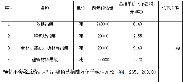 (二) 招标范围:为满足码头货物吞吐量增长需求,新源公司将码头部分货物改用轮胎吊装卸,并外包吊装、装车业务,装卸以件杂货和散货为主。