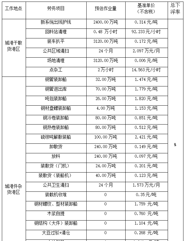 (二)上表作业量为预估值,仅供投标人参考,不作为结算依据,最终结算以实际作业量为准。投标人应对市场进行考察预判,自行承担风险与收益。