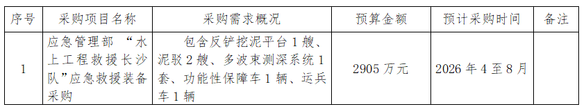 为便于供应商及时了解我司采购信息,现将湖南省航务工程有限公司 2026年4至8月采购意向公开如下:
