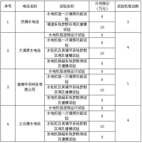 本项目为单价合同,依据各电站计划开展的试验名称、机组台数,招标人为本次招标编制了总价最高投标限价和各电站分项最高投标限价。