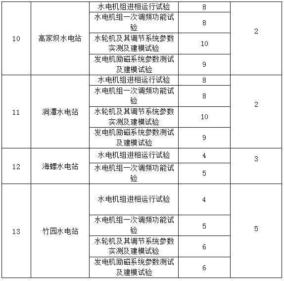 湖南省港航水利枢纽管理有限公司下辖12个水电站(双牌、大源渡、土谷塘、南津渡、五洲亭、水府庙、洒埠江、龙家山、高家坝、洞潭、海螺、竹园)的机组涉网试验,试验项目包括: