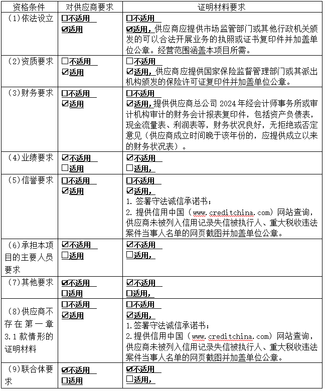 3 供应商资格要求