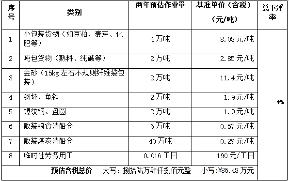 (二)表中的作业量均为预估值,仅供供应商参考,不作为结算依据,最终结算以实际作业量为准。供应商应对市场进行考察预判,自行承担风险与收益。