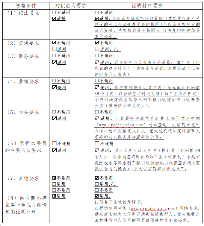 湖南省洞庭湖区重点垸堤防加固—期工程白蚁防治堤段范围外白蚁普查已具备采购条件,现公开邀请供应商参加采购活动。