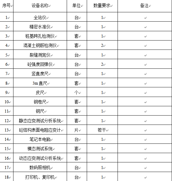 注:投标人应在投标文件中承诺拟投入的试验检测设备满足上表的最低要求。